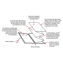 • Il peut être aisément rempli à la main ou par des étiquettes autocollantes à imprimer chez vous. Un mode d’emploi détaillé est donné au verso de l’arbre, à côté d’un espace de rédaction pour des compléments et des histoires de vie.